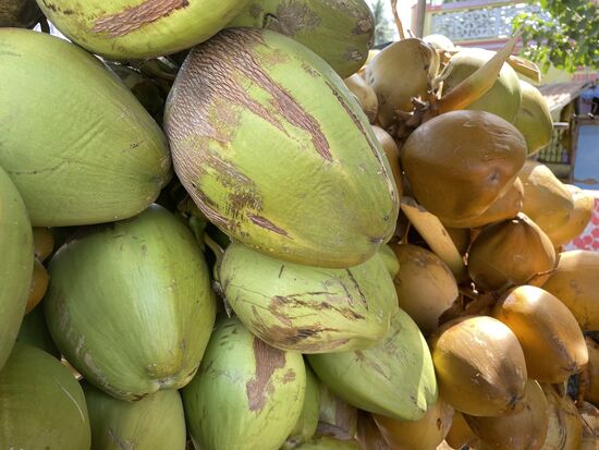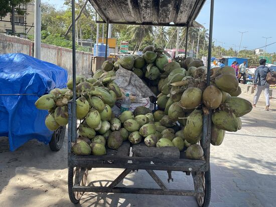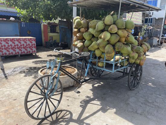 Mich lockt derweil eine frische Kokosnuss. Genau das richtige bei den Temperaturen. Als ich mich mit meiner frisch aufgeschnittenen Frucht auf der Mauer am Meer bequem mache, kommt einer der bärtigen Männer auf mich zu. Er möchte auch eine, wie mir scheint. Das kann ich nicht abschlagen, ich gehe zurück zum Verkäufer, kaufe eine zweite. Doch auf dem Weg zurück sitzen zwei andere Männer auf der Strasse und sehen mich eindringlich an.