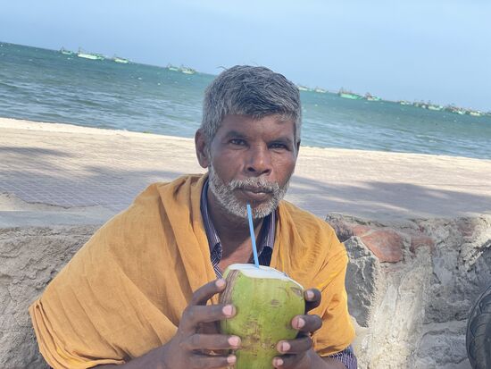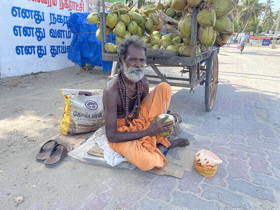 Heute ist Kokosnusstag, entscheide ich und hole für jeden eine. Sie wollen dafür fotografiert werden. Ob sie es tatsächlich wollen, kann ich natürlich nicht wirklich überprüfen, aber wahrscheinlich hat ihre Erfahrung sie gelehrt, dass Touristen als Gegenleistung für ein Geschenk, ein Bild machen wollen. Ich jedenfalls komme dadurch zu Portraitaufnahmen, die ich mich nicht getraut hätte, zu machen. Dass der eine Bettler mit seinem Beinstumpf darauf besteht, dass ich nicht nur eine Portraitaufnahme mache, sondern dass sein Bein sichtbar ist, ist etwas speziell, aber er will wohl einfach auf seine Situation aufmerksam machen. Jedenfalls nickt er die Foto erst nach einer erneuten Aufnahme mit einem Lächeln ab.