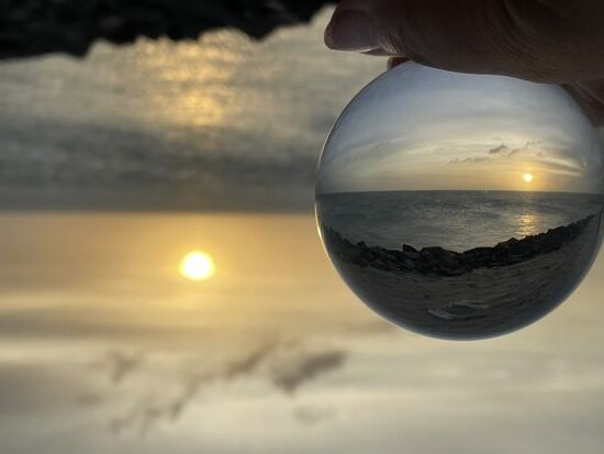 Ich versuche, noch ein paar schöne Aufnahmen zu machen, habe sogar extra meine Glaskugel aus dem Rucksack geholt, aber ich muss schon bald einsehen, dass ich den besten Moment verpasst habe. Um 10 Minuten.