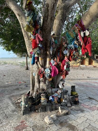 Ich besuche noch kurz den Tempel, der aber nichts hergibt. Ausser vielleicht dem Baum um den viele Tücher und Kleider geschlungen sind.. Danksagungen für Wunder?