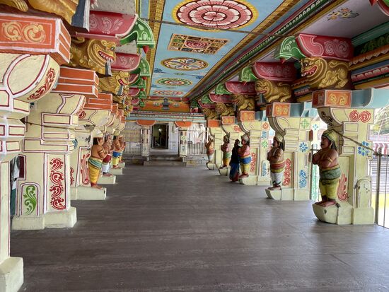Unser nächster Halt ist ein geheimnisvoller Ort. Ein kleiner Tempel am Meer. Ich soll eintreten, drinnnen sind ein paar Frauen, ein Mann segnet sie. Auch ich werde gesegnet, indem ich meine Hände über eine Oellampe halten und dann an die Stirn greifen soll. Dann streicht mir der Mann etwas weisse Asche auf die Stirn. Weisse Asche bedeutet Shiva. Allerdings werde ich von den Frauen jetzt zum fotografieren gedrängt. Sie wollen unbedingt Selfies machen, doch der Priester erlaubt das nicht im Tempel. Also sind wir ganz schnell draussen. Zum Abschied drücken mir alle die Hand, sie scheinen es zu lieben, eine Ausländerin zu treffen.