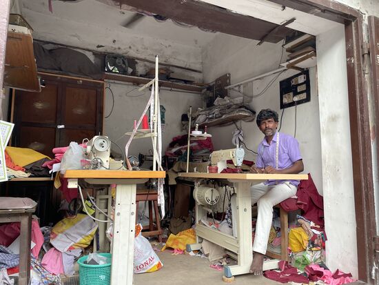 Dann gehe ich noch einmal zum Meer, schaue unterwegs einem Mann zu, der frisch gewaschene Hemden bügelt, das Stück für 15 Rupien und einem Schneider, der ein Paar Hosen in Arbeit hat.
