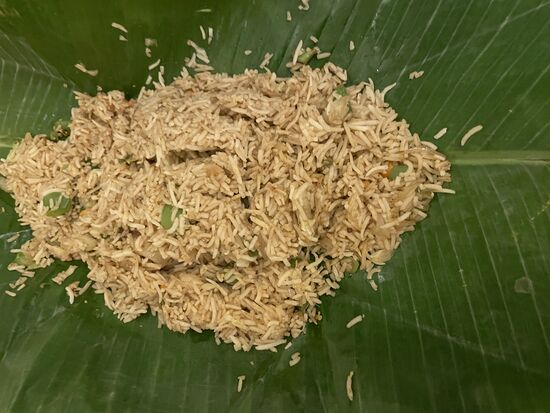 Alles nicht halb so schlimm, Der Reis wurde sorgfältig in ein Bananenblatt eingepackt und schmeckt hervorragend.