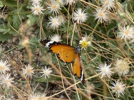 Ich entdecke ein Theatergebäude und eine grosse Arena. Hier könnte man grosse Schulaufführungen machen. Ob da Stühle aufgestellt würden, oder ob man sich eher direkt auf den Boden setzt? Es ist heiss geworden, auch ich suche Schatten. Und werde gleich wieder von tanzenden Schmetterlingen gelockt. Sie schaukeln in der heissen Sonne über trockene Gräser und vertrocknete Blumen. Eigentlich weiss ich es, bei dieser Hitze setzen sie sich kaum je lange genug hin, doch ich kann es nicht lassen, bleibe ihnen hinterher, folge ihrem Schaukeln, ihren Lockungen. Ich brauche immer lange, bis ich es einsehe, dass da nichts mehr wird daraus.