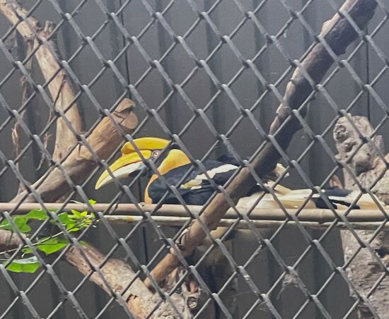 Die Wege durch den Zoo sind vorgegeben und so komme ich zuerst zu den vielen Vogelkäfigen. Leider sind die Vögel hinter einem dichten, fürs fotografieren sehr unpraktischen Gitter (ich gehe davon aus, dass es die Vögel noch mehr stört, als mich). Dadurch ist es ziemlich schwierig, den Fokus auf den Vogel zu lenken, immer kommt mir das Gitter dazwischen.
