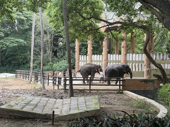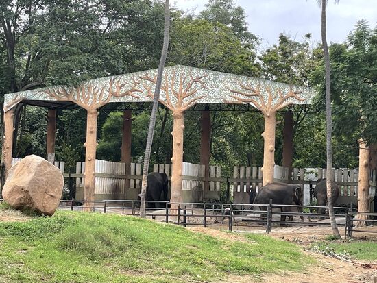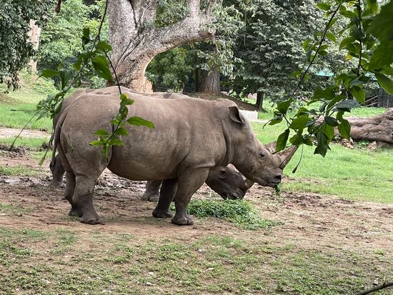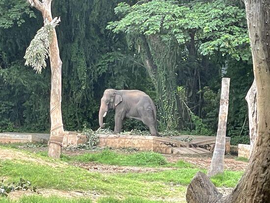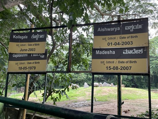 Die Elefanten leben in kleinen Familienclans. Jedenfalls interpretiere ich das so. Jungtiere kann ich zwar keine entdecken. Aber ihre Gehege sind wirklich sehr gross und nicht überall überblickbar, so dass sich die grossen Tiere auch zurück ziehen können. Bei den grossen Tieren gibt es auch immer wieder Tafeln, die anzeigen, wann die Tiere geboren wurden.