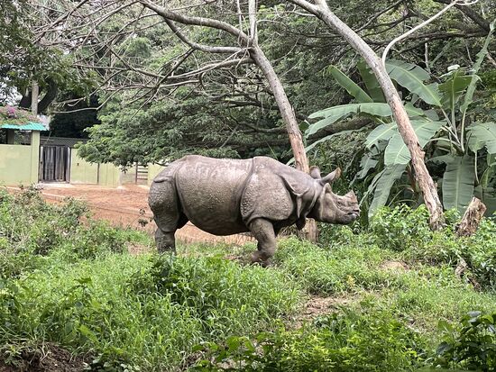 Noch einmal begegne ich einen grossen Nashorn. Indisches Rhinozeros ist es angeschrieben und mit seinem dicken Panzer, der sich wie Platten über seinen Körper legt, sieht das Tier irgendwie archaisch aus.