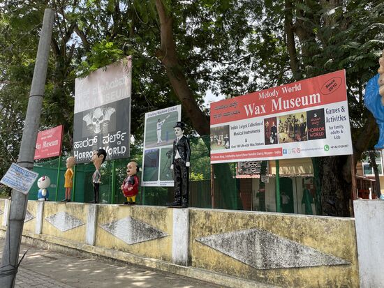Und noch einmal halten wir bei einem skurilen Museum an. Vor dem Wax-Museum stechen Comic-Figurren und draussen an der Mauer kann ich sogar Charly Chaplin sehen. Mit diesen Figuren hat das Wax-Museum allerdings überhaupt nichts zu tun. Die einzigen beiden Figuren die sich auf echte Menschen beziehen, ist einerseits ein ehemaliger Herrscher und Mahatma Gandhi, der in einer Nische steht. Und wenn man ganz extrem tolerant ist, könnte man vielleicht noch die Beatles in ihren ganz jungen Jahren erkennen, als es um ein Beispiel einer Musikband aus Europa geht.