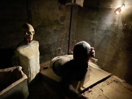 Den zweiten Teil des Museums muss ich allerdings alleine durchlaufen. Ich lese noch die Regeln, bevor ich eintrete: Keine schwangeren Frauen, keine Kinder unter 10 Jahren, keine über 60-jährigen. Eintreten auf eigenes Risiko, man übernommt keine Verantwortung für Horror oder Tod.