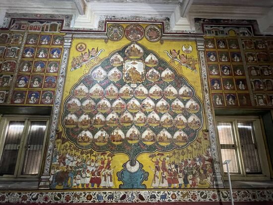 Der allerletzte Raum ist komplett mit Bildern bemalt. An den Wänden sind die Stammbäume der Könige dargestellt, Portraits, Blumen, Götter. Der Raum erschlägt mich fast, würde ihn in Zusammenhang mit der sixtinischen Kapelle in Verbindung bringen, wenn nicht die Themen komplett anders wären. Ich brauche jetzt dringend eine Pause.