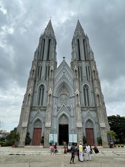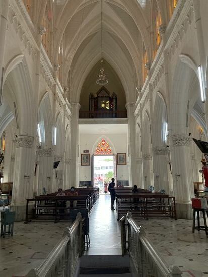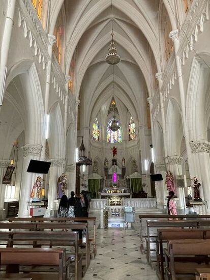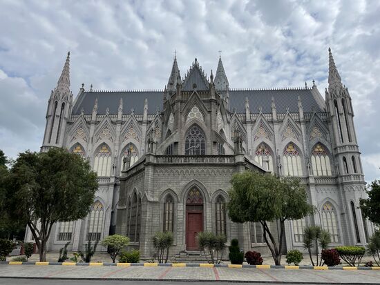 Auf dem Weg zum Hotel kommen wir noch an einer grossen Kirche vorbei. Ich hatte sie schon bei Nacht kurz gesehen, jetzt halten wir an. Es ist die St. Philomena-Kirche, erbaut 1936 im neugotischen Stil. Sie sollte dem Kölner Dom nachgeahmt werden.