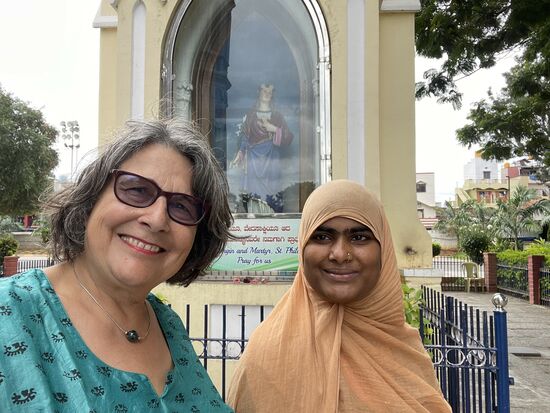 Also eine erstaunlich junge Kirche. Mich überraschen immer wieder diese vielen vielen christlichen Symbole in diesem hinduistischen Land. Doch Shariff lacht. Hier in Mysore haben wir überhaupt keine Probleme mit der Religion. Meine Freunde sind Muslims, Christen und Hindus. Die Kirchen und Tempel stehen in der gleichen Nachbarschaft. Man arbeitet zusammen, heiratet untereinander. Jeder glaubt an seinen eigenen Gott, ich glaube an jeden. Nein, er will sich nicht festlegen, seine Eltern kamen aus verschiedenen Kulturen, er fühlt sich frei, nirgends zugehörig. So wie übrigens auch sein Freund Ali, den ich vor ein paar Tagen kennen gelernt habe und der sich von allen Religionen losgesagt hat und dabei prophezeit hat, dass sich Indien in den nächsten fünf Jahren komplett ändern würde.