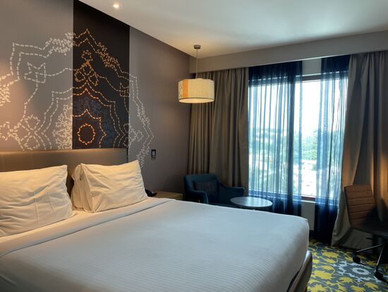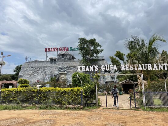 Nun denn, wenn Imran etwas Englisch spricht und sich auskennt, dann ist das in Ordnung. Leider trifft dann beides nicht zu. Imran war noch nie im Nationalpark, die Hotels, die ich ihm aufzähle und die ich buchen könnte, kann er in seinem System nicht finden. Da ich selber auch keine Ahnung habe und ausserdem nicht weiss, wo der Eingang zum Park ist, entschliesse ich mich letztlich spontan für das wohl kurligste Hotel, das ich je gesehen habe. Es sieht aus wie eine Felswand. Eine künstliche Felswand, der Eingang ist eine dunkle Höhle, hinter der der Manager hockt. Aber das Zimmer ist in Ordnung, mit einem grossen Poster an der Wand.