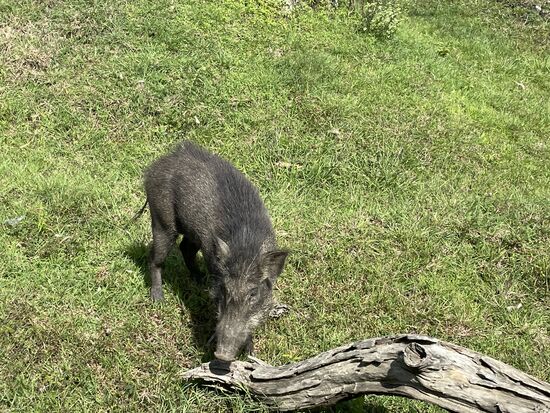 Immerhin bekomme ich dann aber doch noch einen Fenster-Platz im Bus. Und auch wenn ich mir kaum vorstellen konnte, dass man mit dem Bus überhaupt Wildtiere sehen könnte, fahren wir gleich als erstes an einer Wildsau vorbei.