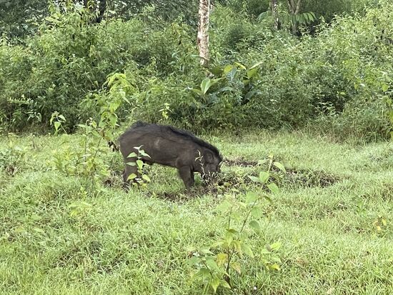 Danach begegnen wir einer Wildsau, die dabei ist, ein Loch in die Erde zu graben. "Farmer of the wood" nennen wir sie oft, meint der Guide. 'Bauern des Waldes', weil sie den Waldboden beackern.