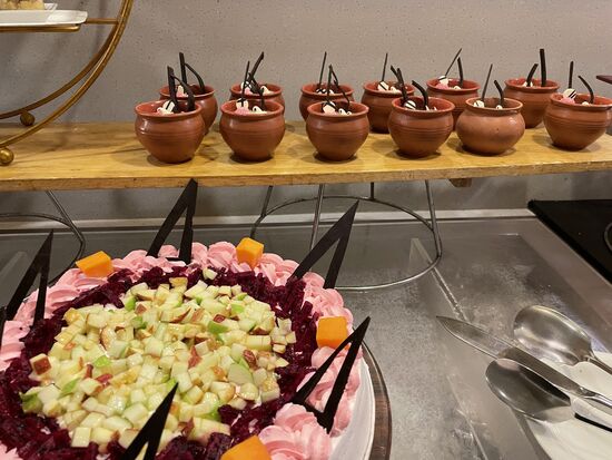 Das Salat und Vorspeisenbuffet mit vielen rohen Gemüsen ist dafür sehr vielfältig und das Dessertbuffet immer üppig und vor allem sehr süss.