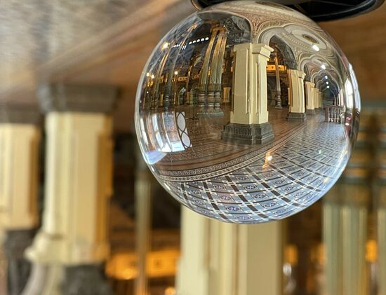 Dabei merke ich aber auch, dass es gar nicht so einfach ist, mit der Kugel gute Aufnahmen zu machen. Die Scheinwerfer, die überall die Räume erstrahlen, stören zum Teil enorm.