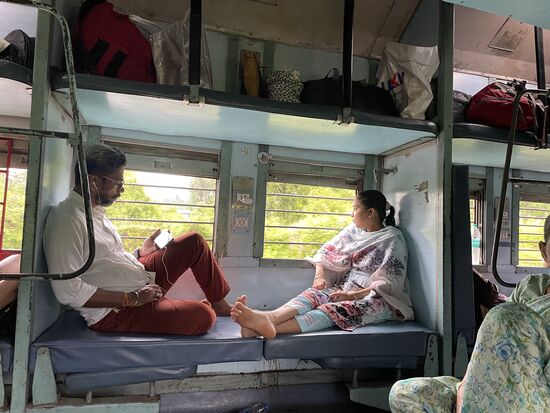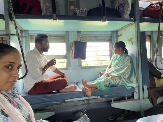 Der Mann kommt zurück, entschuldigt sich, dass er eben bei seiner Familie, seiner Frau sitze. Auch sie fahren bis Mumbai, ich werde also meinen Ausstiegsbahnhof nicht verpassen.