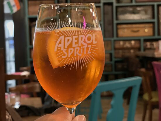 Stunden später, es ist inzwischen dunkel geworden, mache ich mich auf die Suche nach einem Restaurant. Und werde tatsächlich in der Nähe fündig. Um ein paar Ecken finde ich den Sassy Spoon - frecher Löffel - und weil mich das Lokal mit seinen vielen Blumentöpfen anzieht und ausserdem ein Aperol Sprit auf der Apero-Karte steht, bleibe ich da.