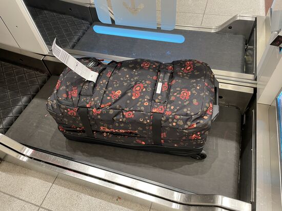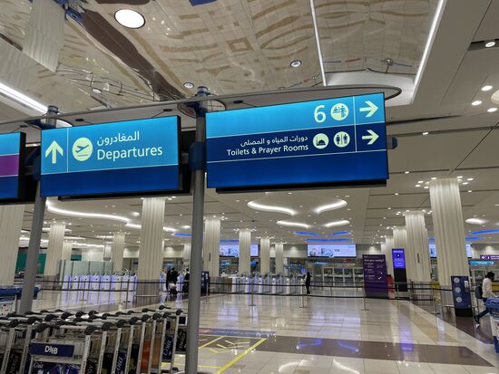Einchecken in Dubai geht fast vollautomatisch. Gepäck auf die Waage legen, Bording-Card einscannen. Der Koffer wird gewogen und eine Banderole ausgedruckt. Ankleben, fertig. Da sitzt niemand mehr an einem Schalter..