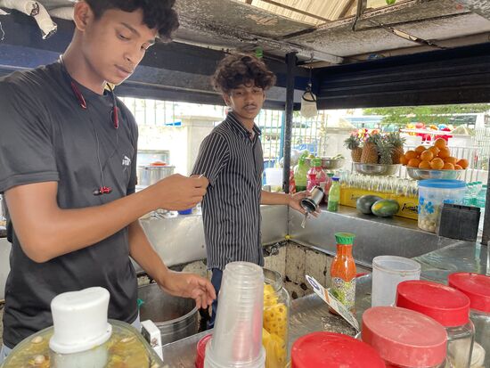 Immer wieder werde ich von Verkäufern gefragt, ob ich eine Bootsfahrt machen möchte, doch im Moment will ich an Land bleiben. Vielleicht Morgen. Eine Mangrovenfahrt wird versprochen, Backwaters nennt sich das. An einem Früchtestand lasse ich mir einen Fruchtdrink mischen. Ananas mit Papayas. Schmeckt wunderbar.
