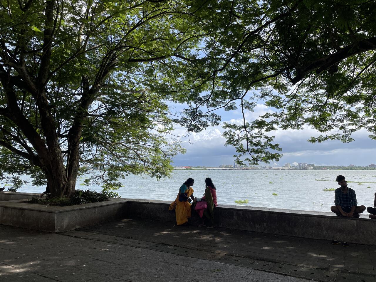 Jetzt bin ich bereit, mir die Stadt anzusehen. Vielleicht kennt er einen Tucktuck-Fahrer der mich rumführen kann und der Englisch spricht. Sofort steht der junge Mann da, der die ganze Zeit vor dem offenen Geschäft herumgelungert hat. Er ist Fahrer, sein Tucktuck ist bereit. Mit seinem Englisch happert es allerdings und auf meine Frage nach dem Preis für eine Rundfahrt von 1-2 Stunden weiss er nicht genau, was er sagen soll. Auch kommt ihm kein Ort in den Sinn, den er mir zeigen könnte. Und so fahren wir nur gerade ans Wasser. Es ist hier zwar Meerwasser, aber es gibt ein paar vorgelagerte Inseln, zu denen Schiffe hinaus fahren. Wir spazieren entlang der Fussgängerzone. Ein Gespräch will nicht in Gang kommen, sein Englisch ist zu schlecht, aber immerhin entdecke ich die Steintafeln in die Weisheiten von A.P.J. Abdul Kalam Später ergoogle ich, dass dieser der 11. Ministerpräsident Indiens war. Philosoph und Ministerpräsident.
