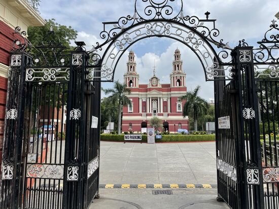 Tatsächlich bleibt er kurz bei einer schönen roten Kirche stehen. Es ist die Heilig-Herz-Kirche und es werde hier täglich eine Messe gelesen, erzählt mir mein Fahrer. Hinein gehen mag ich nicht, so fahren wir weiter.