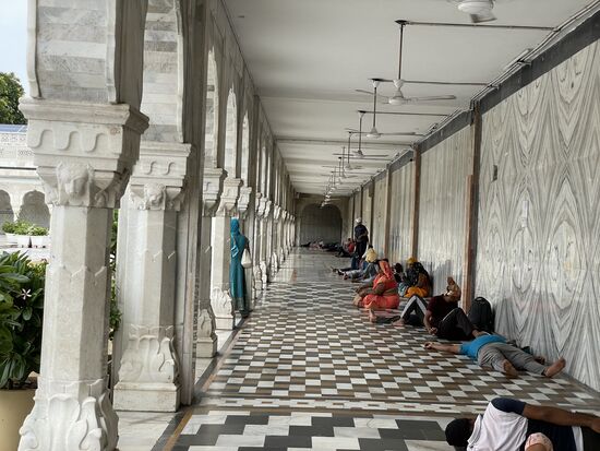 Schneeweiss erhebt sie sich und wird von vielen goldenen Kuppeln geschmückt. Ein sehr eindrücklicher Bau. Ich meine gelesen zu haben, dass es das grösste Heiligtum der Sikh ist. Sein Ursprung geht ins 17. Jahrhundert zurück.