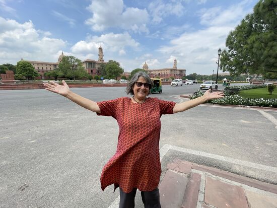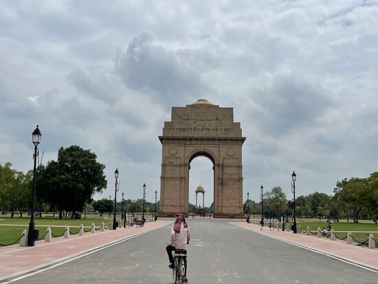 Er fährt mich zum Gate of India, dem grossen Tor, dem Triumphbogen, der dem von Paris nachempfunden ist. Hier möchte ich ein wenig durch den Park spazieren und entlasse meinen Fahrer. Muss allerdings bald feststellen, dass der grosse Park geschlossen ist. Überall steht Polizei oder Militär, es gibt keinen offenen Eingang, auch wenn ich glaube, drinnen ein paar Leute zu erkennen. Wahrscheinlich sind es die Unterhaltsarbeiter oder deren Aufpasser. Jedenfalls nutzt es auch nichts, wenn ich dem langen Zaun entlang laufe, es gibt kein Durchkommen. Auch die lange Grünzone, die zum Parlaentsgebäude führen würde, ist geschlossen.