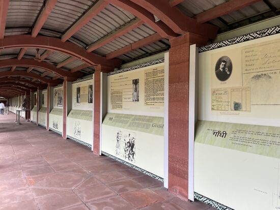 Ganz in der Nähe ist das Mahatma Gandhi Memorial. Hier wurde er 1948 ermordet. Es gibt eine lange Galerie mit vielen Fotos und Episoden aus seinem Leben. Viele Bilder mit Begegnungen mit wichtigen Menschen seiner Zeit. Er war ein Feiheitskämpfer, ein Pazifist, der wohl als einer der ersten für die Durchsetzung seiner Ziele in den Hungerstreit trat.