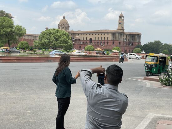 Auf der Weiterfahrt kommen wir beim Parlamentsgebäude vorbei. Eigentlich dürfte man hier nicht anhalten, aber mein Driver macht trotzdem einen kurzen Stop und erweist sich dann sogar noch als Fotograf. NIcht nur für mich, auch eine andere Frau, die soeben mit ihrem Fahrer hergekommen ist, darf von dem Service profitieren. Schau hierhin, nein dorthin, stehe gerade, Kopf hoch. - Er hat es im Griff.