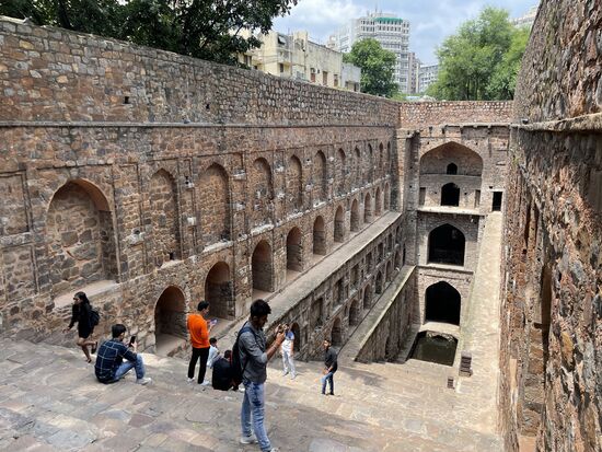 Ugrasen Ki Baoli heisst der Ort und ich habe das noch nie gesehen. Sieht aus wie eine römische Ausgrabung, ist aber ein Stufenbrunnen aus dem 14. Jahrhundert. Es soll hier spuken und manchmal könne man unheimliche Geräusche hören, lese ich später im Google, aber vieleicht kommt das nur von den Tauben und Fledermäusen. Jedenfalls ist der Ort inzwischen ein beliebter Drehort für Bollywood-Filme und einer der wichtigsten Touristenorte.