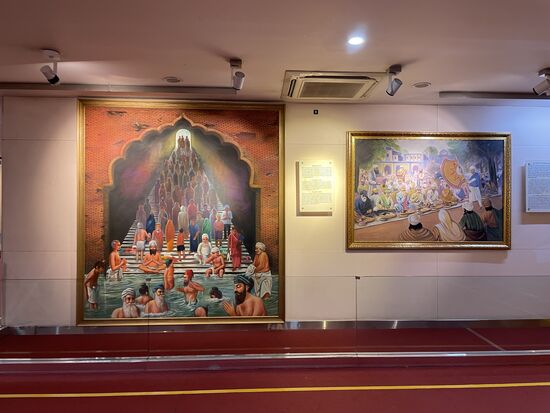 Bevor ich das Gelände wieder verlasse, besuche ich noch das angrenzende Museum. Mit vielen Bildern und indischen Texten wird die Geschichte der Sikhs und dieser Moschee erzählt. Ich habe allerdings nicht die Musse, mir alles genau anzusehen, lasse mich von ein paar Bildern in eine mystische, mir völlig unbekannte Welt hineinziehen und gehe dann zurück zu meinem Tucktuckfahrer.