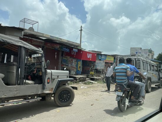 Auch Lastwagen werden kontrolliert. Da gibt es plötzlich einen Stau, ein Polizeiauto hat die Lastwagen angehalten und die stehen jetzt auf allen Spuren. Nur noch eine Spur ist zum Überholen frei. Was wird da kontrolliert, will ich wissen. Die Papiere, meint Nipendra. Es ist Schikane, meistens müssen sie etwas bezahlen, damit sie weiterfahren können.