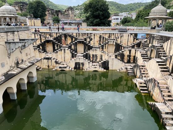 Für seine ersten Informationen hat sich Nick einen eindrücklichen Platz ausgesucht. Am Rande des Wasserreservoirs, das viele Meter tief und mit seinen Treppen ein sehr interessantes Objekt ist. Hier unten konnten die Mitglieder der Familie sich waschen und vergnügen und niemand konnte sie sehen. Das Thema vom niemand kann mich sehen, zieht sich noch durch den ganzen Palast, denn vor allem die Frauen sollten nicht gesehen werden.
