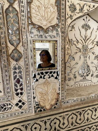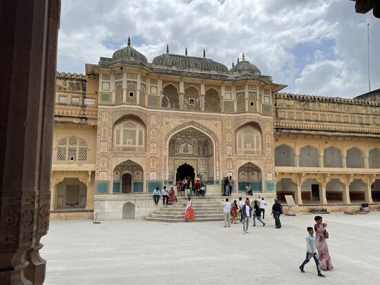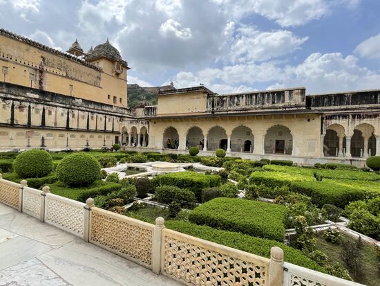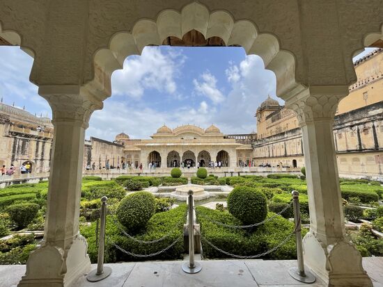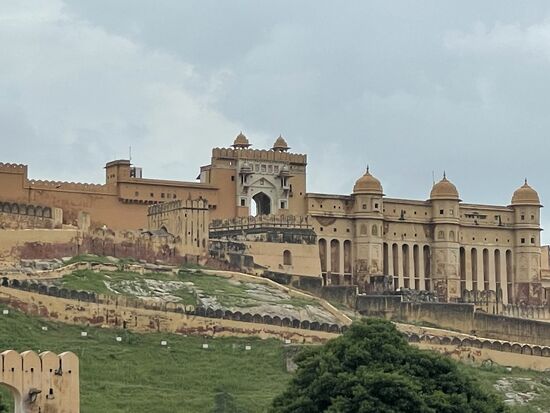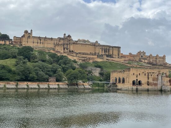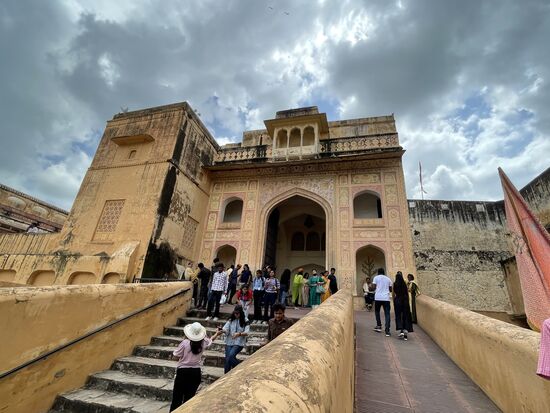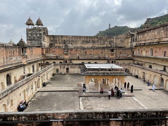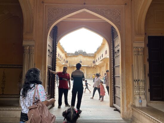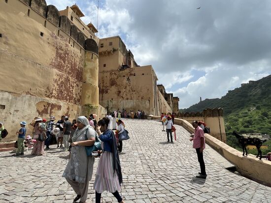 Es ist ein kleiner Vorort, als wir anhalten und ein lokaler Guide zusteigt. Nick heisst er und er sitzt kaum auf dem Vordersitz, schon bombardiert er mich mit Informationen. Amer heisst das Dorf und das war der frühere Hauptort der Gegend. Über dem alten Ort thront das Amber Fort, eine gewaltige Festung aus dem 16. Jahrhundert. Gebaut wurde es von einem Maharadscha, der hier zusammen mit seiner Familie und 6 Ehefrauen lebte.