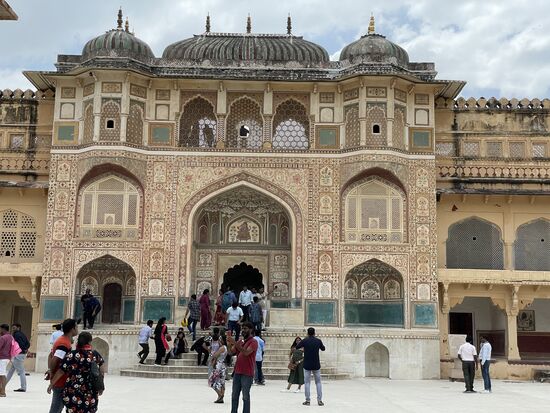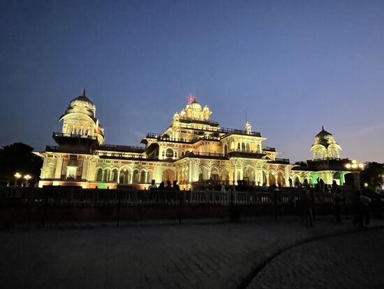 Wir gehen etwas weiter, kommen zu einem reich geschmückten Tor, von dem ich nicht mehr weiss, wohin es führt. Aber auf jeden Fall sind die Gebäude jetzt eh geschlossen, und ich bin auch ausserdem gar nicht mehr aufnahmefähig. Nur noch kurz beim Kreisel einen kurzen Halt vor der Albert-Hall, die ein weiteres Museum ist, dann fahren wir zum Hotel.