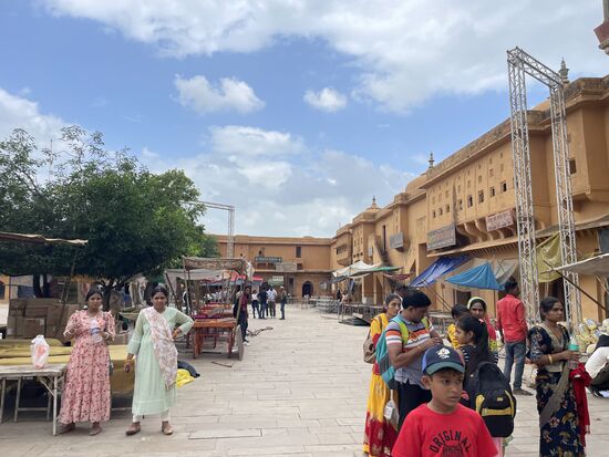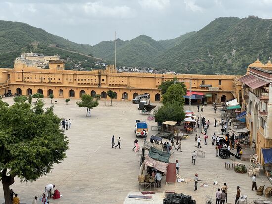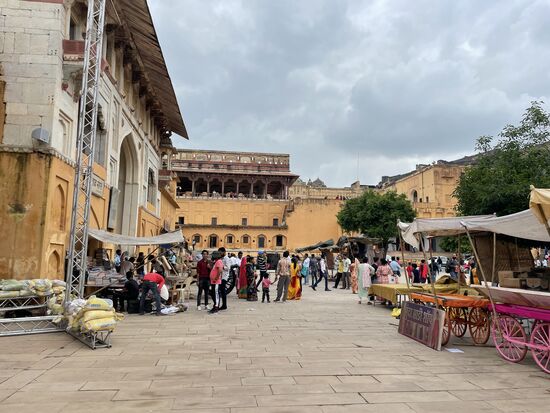 Der grosse Platz wurde früher als Basar genutzt, viele Händler haben den Touristen ihre Waren angeboten. Jetzt ist das verboten, die Händler müssen vor den Toren bleiben. Was heute aussieht, als ob grad ein Basar entstehen würde, sind die Kulissen für einen Film. Der Palast wird gern für Bollywood-Filme genutzt. Er wird aber nie gesperrt, versichert mir Nick, die Filmer müssen sich irgendwie mit den Besuchern arrangieren, müssen ihre Szenen zwischen den Touristen in den Kasten bringen, können zwar kurz die Leute anhalten, aber trotz Filmbewilligung, es wird kein Bereich des Platzes wegen eines Drehs abgesperrt.
