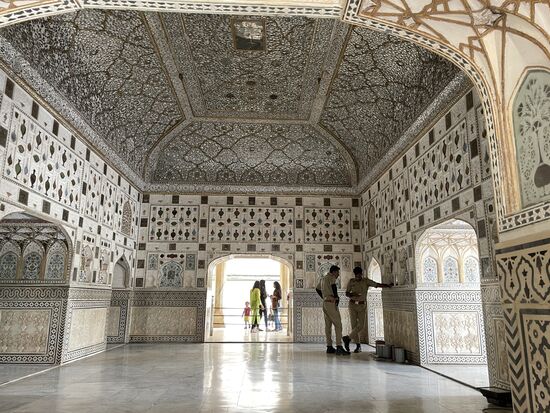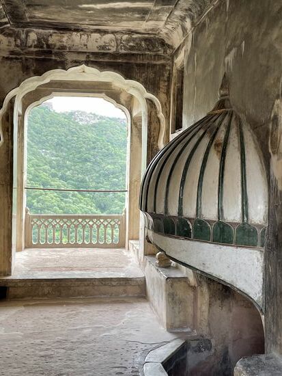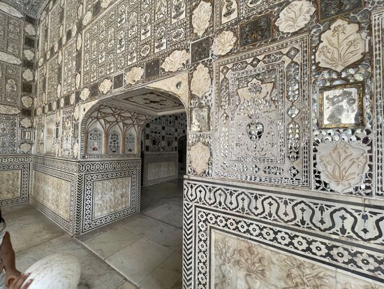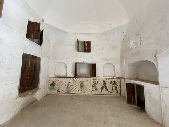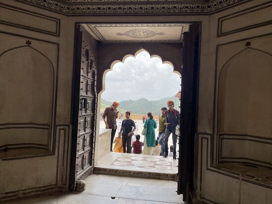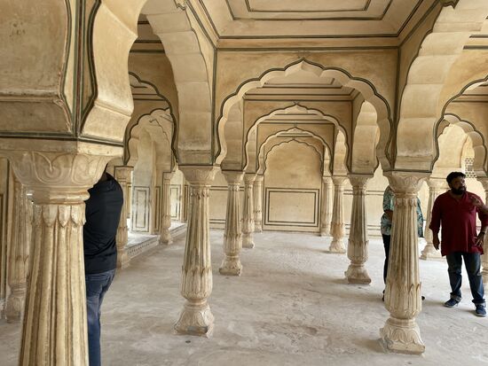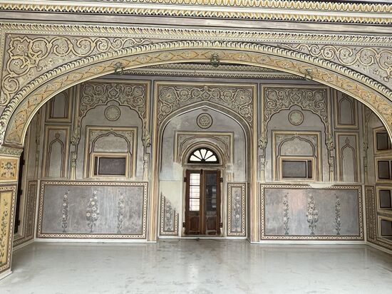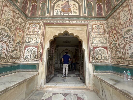 Alle Räume sind offen, es gibt keine Türen zu den grossen Sälen. Nur die Zugänge zu den Frauengemächer sind geschlossen. Es gab übrigens von jeder Frauenwohnung eine Treppe, die direkt zum Zimmer des Maharadschas führte. Doch wahrscheinlich bestimmte er, wer sie benutzen durfte.