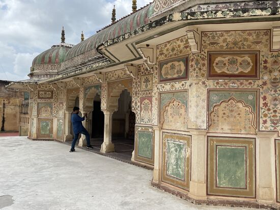 Es ist schwierig, eine sichere Aussage zu machen, aber ich glaube, dieser Palast ist kleiner und vor allem scheint er leichter zu sein. Leichter mit seinen vielen Malereien, mit den floralen Designs, den filigranen Mustern, den hellen Farben, die alle noch Original seien, wie Nick mehrfach betont.