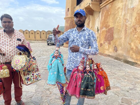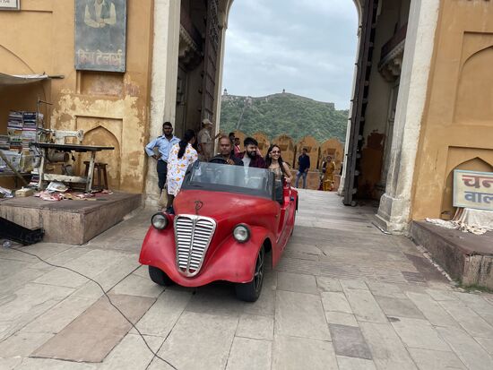 Im Auto habe ich dann Nipendra gefragt, ob er vielleicht einen Schirm im Auto hätte. Nein, hat er nicht, aber nachdem ich ihm erklärte, wozu ich ihn brauchte, strahlte er: beim Fort Amber werden ganz speziell schöne Schirme verkauft. Du wirst heute bestimmt noch einen Schirm finden.
