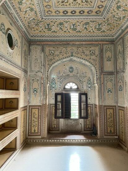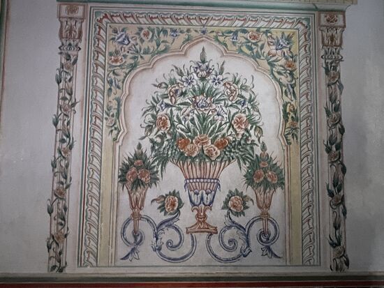 Viele Räume sind wunderschön mit Ornamenten verziert. Alles noch Original-Farben betont Nick. Es sind natürliche Pflanzenfarben, die verwenden wurden und die ihren Glanz noch nicht verloren haben.