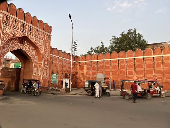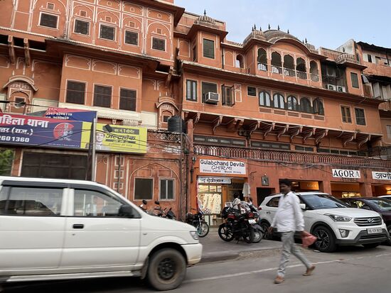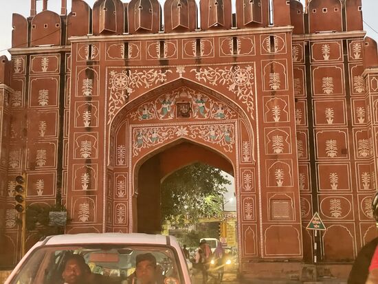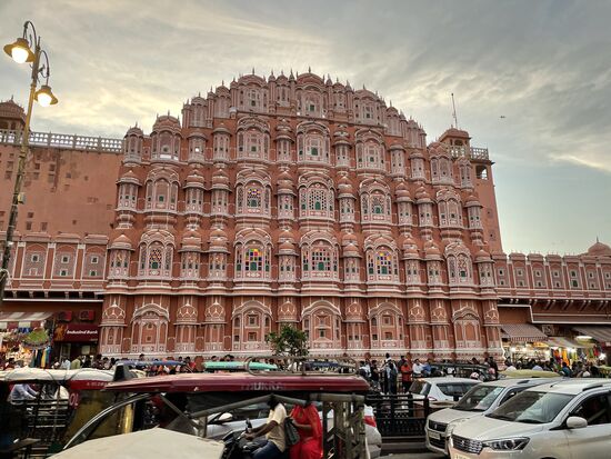 Die Dämmerung setzt gerade ein, als wir in die Stadt einfahren. Jaipur, die Pink-City, die rosarote Stadt.