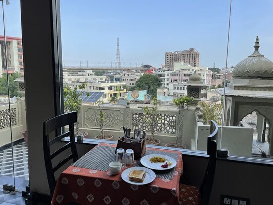Wir sind wieder unterwegs. Allerdings ist die Strecke heute nicht ganz so lang, nur 150 km, das heisst 3 Stunden Fahrt. Darum konnte ich am Morgen gemütlich auf der Dachterrasse frühstücken. Habe sehr gut geschlafen im Pfauenbett, aber ich war auch entsprechend müde von den vielen Eindrücken gestern.