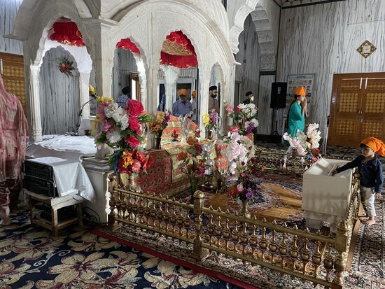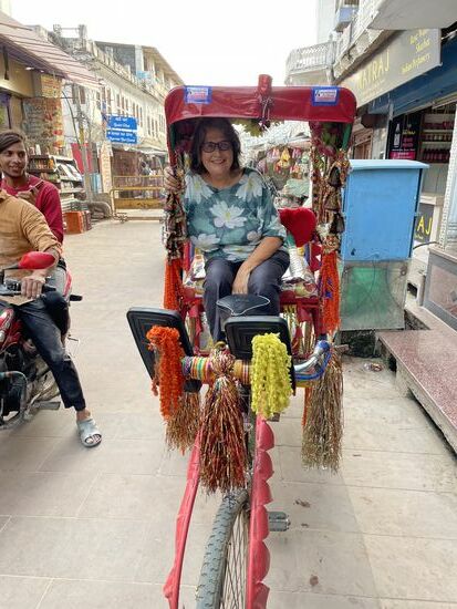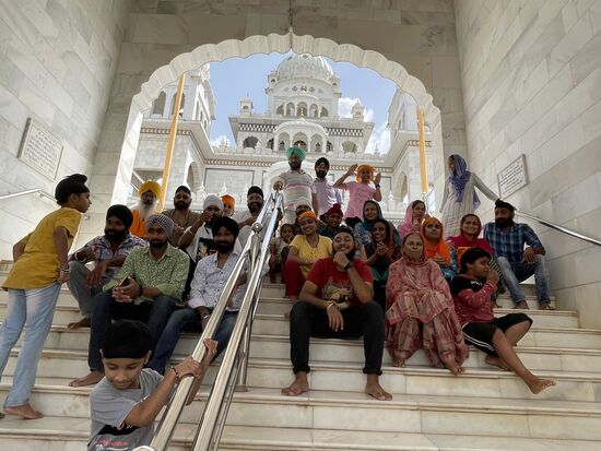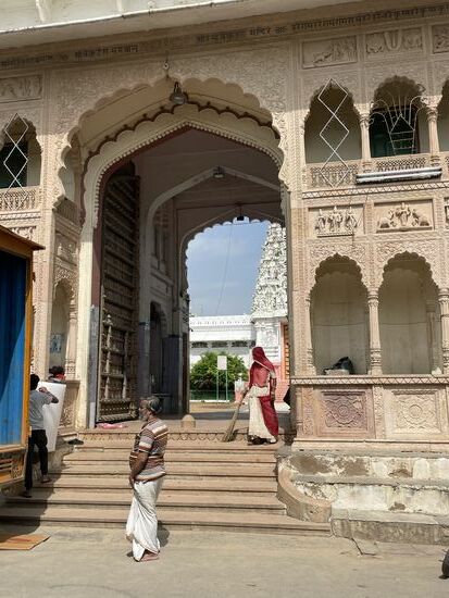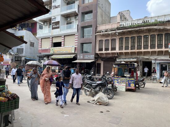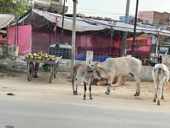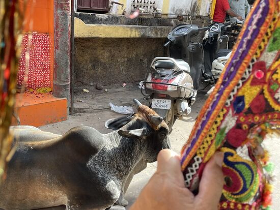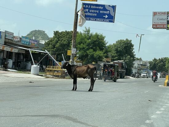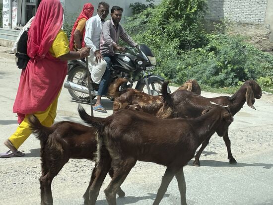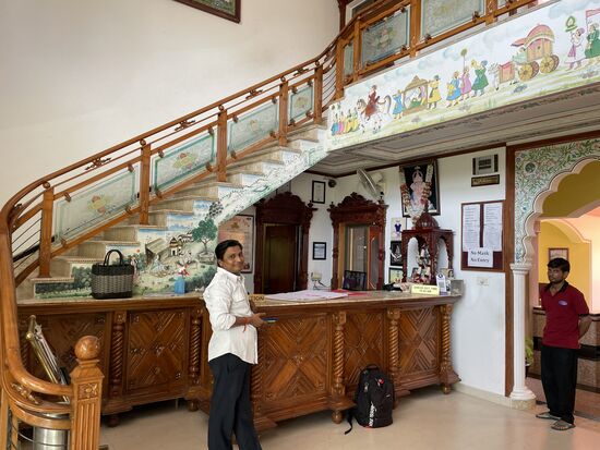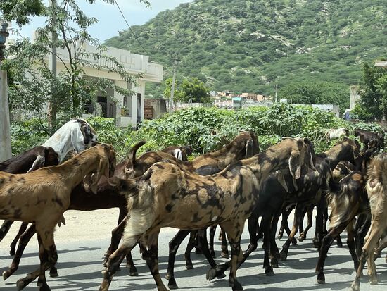 Einmal überholen wir sogar zwei grosse Mähdrescher und dann ist es eine Ziegenherde, die unseren Weg kreuzt und den Verkehr fast zum Erliegen bringt. Die Strassen in Indien sind täglich voller Überraschungen. Nipendra liebt das Unterwegs sein. Während der Pandemie arbeitete er bei seinem Vater auf der Farm. Das war eine völlig andere Arbeit, meint er, er hätte die Freiheit vermisst und die Wartezeiten, wenn seine Gäste sich etwas ansehen, die Kontakte mit Menschen.