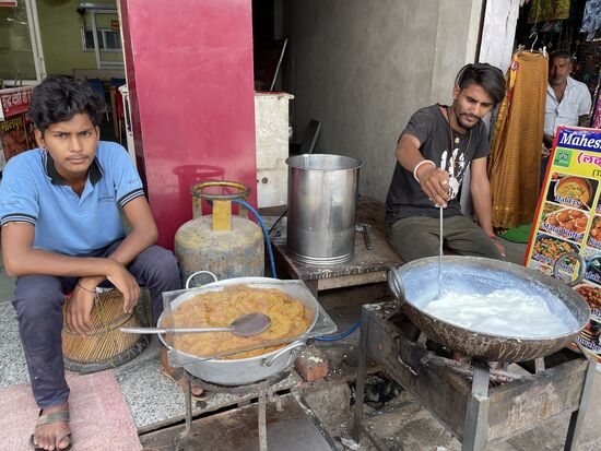 Und Nipandra, der mit dem Besitzer im Schatten sitzt und einen Chai trinkt.