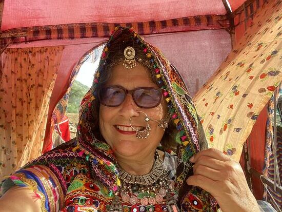 Ich mache noch kurz eine Foto-Session mit Saura und ein paar Selfies, zur Erinnerung, denn dass Video unbrauchbar ist, ist mir schnell klar geworden. Erst viel später im Zimmer sehe ich, wie ich ausgesehen habe und muss gestehen, als indische Gipsy-Queen würde ich mich gar nicht schlecht machen.