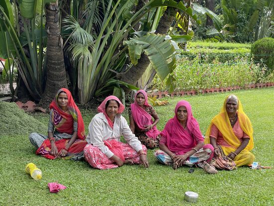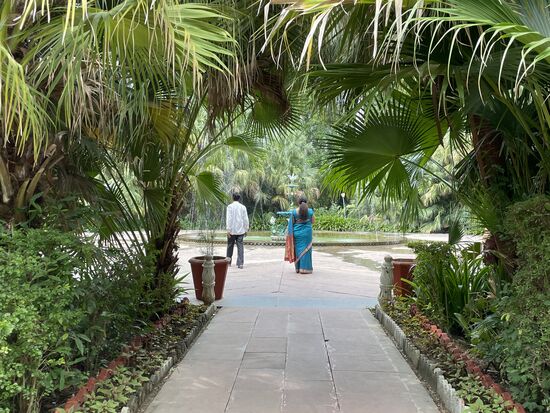 Irgendwo treffe ich auf eine Gruppe Frauen, die in ihren buten Saris entspannt im Rasen liegen. Als ich mich nähere, sitzen sie auf und bedeuten mir, dass ich sie gern fotografieren dürfe. Ob es Nachkommen der Maiden sind, für die der Park angelegt wurde, oder vielleicht doch Arbeiterinnen, die sich grad eine kurze Mittagspause gegönnt haben.
