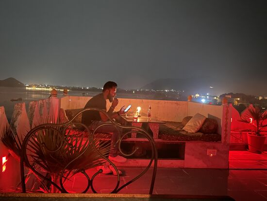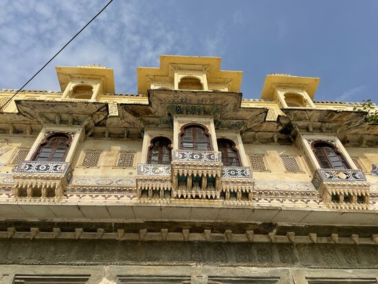 Mit einem winzigen wackeligen Lift fahre ich hinauf zur Dachterrasse und bekomme tatsächlich einen richtigen Cappuccino. Rajasthan ist ein Paradies.