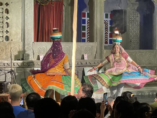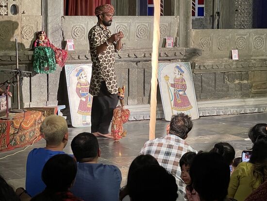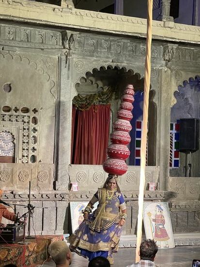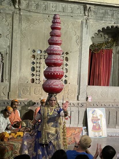 Da erreicht ich eine Nachricht eines Facebook-Freundes. Sumer kenne ich zwar nicht persönlich, aber ich weiss, dass er Guide ist, hier in Rajasthan. Er hat in meinen Posts gesehen, dass ich in der Nähe bin und will wissen, wo genau ich heute sei. Natürlich ist er enttäuscht, dass ich mich nicht bei ihm gemeldet hatte, doch die Zeit war dafür einfach zu kurz. Nach einer kurzen Enttäuschung hat er mir aber dann trotzdem einen Tipp, wo ich heute Abend in Udaipur essen könnte. Und vor allem macht er mich auf eine Folklore-Show aufmerksam, die jeden Tag aufgeführt wird.